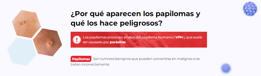 Las verrugas y los papilomas comenzaron a esparcirse por todo mi cuerpo. No me ayudaron ni los procedimientos estéticos ni los productos de farmacia. Una amiga mía me recomendó que me hiciera la prueba de parásitos y resultó ser que estaba infectada por ellos. Mi médico me recetó Toxic OFF para eliminar las lombrices intestinales, las verrugas y los papilomas al mismo tiempo. Además, Toxic OFF te da protección contra la reinfección, fortalece tu sistema inmunitario y limpia su cuerpo.